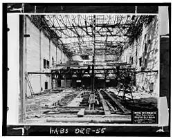 Thomas and Mercier were chosen for their "association with East Portland" and their previous theatre design experience with the Bagdad Theater in Portland, McDonald Theatre in Eugene, and the Egyptian Theatre in Coos Bay.[2] They moved into the Weatherly Building upon its completion.[2] The building cost was "variously reported between $300,000 and $500,000."[2] The general contractor of the building was Robertson, Hay, and Wallace.[2] While under construction, the project was called the "Crystal Ice & Storage Co. Office & Theatre Building."[2]