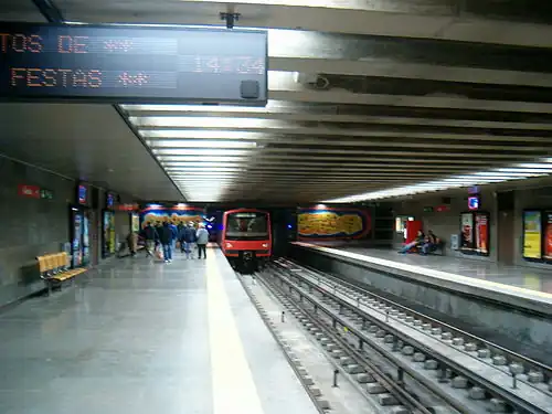 Oriente is a station on the Red Line of the Lisbon Metro. The station is located in Lisbon, between the Cabo Ruivo and Moscavide stations. The station is a part of the Gare do Oriente, one of the main transport hubs of the city, serving the North, Sintra, and Azambuja Lines and also several bus lines.[2]