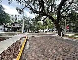 Today, the historic core of "Old Orlando" resides in downtown Orlando along Church Street, between Orange Avenue and Garland Avenue. The urban development and the central business district of downtown have rapidly shaped the downtown skyline during recent history. The present-day historic district is primarily associated with the neighborhoods around Lake Eola but stretches west across the city to Lake Lorna Doone and north into the College Park Neighborhood where you can find century-old oaks line brick streets. These neighborhoods include the "Downtown Business District," "North Quarter," "Parramore," "Callahan," "South Eola Heights, "Lake Eola Heights,"Thornton Park" and "College Park", and contain some of the oldest homes in Orlando.