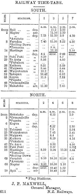 - ^ "RAILWAY TIME-TABLES. DOMINION". paperspast.natlib.govt.nz. 28 March 1910. Retrieved 26 September 2021.