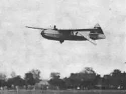 Around 1960, Percival Spencer successfully flew a series of uncrewed ornithopters using internal combustion engines ranging from 0.020-to-0.80-cubic-inch (0.33 to 13.11 cm3) displacement, and having wingspans up to 8 feet (2.4 m).[9] In 1961, Percival Spencer and Jack Stephenson flew the first successful engine-powered, remotely piloted ornithopter, known as the Spencer Orniplane.[10] The Orniplane had a 90.7-inch (2,300 mm) wingspan, weighed 7.5 pounds (3.4 kg), and was powered by a 0.35-cubic-inch (5.7 cm3)-displacement two-stroke engine. It had a biplane configuration, to reduce oscillation of the fuselage.[11]
