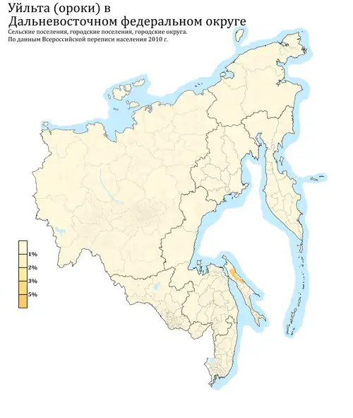 Oroks (Ороки in Russian; self-designation: Ulta, Ulcha), sometimes called Uilta, are a people in the Sakhalin Oblast (mainly the eastern part of the island) in Russia. The Orok language belongs to the Southern group of the Tungusic language family. According to the 2002 Russian census, there were 346 Oroks living in Northern Sakhalin by the Okhotsk Sea and Southern Sakhalin in the district by the city of Poronaysk. According to the 2010 census there were 295 Oroks in Russia.