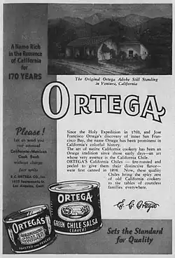 - ^ "Our Grand Old Names Are Vanishing!". The Los Angeles Times Sunday Magazine. February 9, 1936. p. 16.("The house of Ortega is widely advertised in this generation by E. C. Ortega, whose potent canned chili products tingle epicurean palates the world over.")
