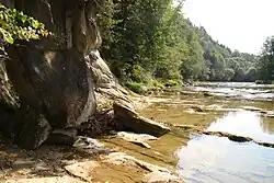 The Osława (Czech: Oslava, German: Oslawa, Ukrainian: Ослава) is a river in South-Eastern Poland. Its name comes from the ancient west Slavic dialect word osła, meaning "stone". It begins in the Bieszczady mountains and flows through western Sanok Land. The river ultimately flows into the San near Bykowce, north of Zagórz.