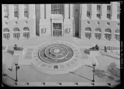 The fountain was designed by Adolph Alexander Weinman,[1] funded with a public subscription beginning in 1929,[2] and dedicated on October 26, 1947.[3] In the center of the memorial is the massive fountain with the inscription "statesman, author, diplomat" and to each side are two groups of statues, one called Justice (to symbolize the religious freedom which allowed a Jew to serve in such a position of authority) and the other Reason (to symbolize the capitalism and labor efforts put forth by Straus).