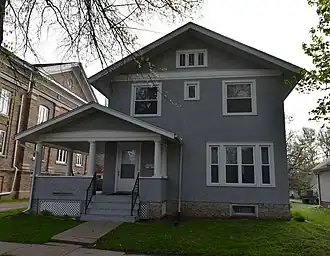 The house is a two-story frame structure that is covered with stucco. It was designed in the Prairie School style by Bloomington, Illinois architect A. T. Simmons. He designed the neighboring Iowa Yearly Meeting House-College Avenue Friends Church three years previous.[2] Completed in 1915, it is a single-family house that features a gable-end facade, concrete block foundation, several ribbon windows, and a wrap-around front porch with a gable-end roof. It was listed on the National Register of Historic Places in 1996.[1]