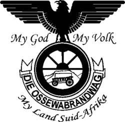 The Ossewabrandwag (OB) (Afrikaans pronunciation: [ˈɔsəˌvɑːˌbrantvaχ], from Afrikaans: ossewa, lit. 'ox-wagon' and Afrikaans: brandwag, lit. 'guard, picket, sentinel, sentry' - Ox-wagon Sentinel) was an Afrikaner nationalist organization, founded in South Africa in Bloemfontein on 4 February 1939. It was strongly opposed to South African participation in World War II, had hostile views toward the United Kingdom and was sympathetic to Nazi Germany.[2] In late 1940, the Ossewabrandwag plotted a pro-German insurrection against Prime Minister Jan Smuts, albeit the plan was aborted.[3]