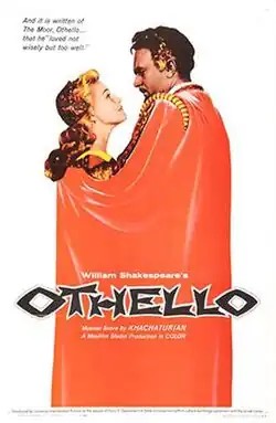 Othello (Russian: Отелло, romanized: Otello) is a 1955 Soviet romantic drama film directed by Sergei Yutkevich,[1][2] based on the play Othello by William Shakespeare. It was entered into the 1956 Cannes Film Festival, where Yutkevich received the Best Director Award.[3]