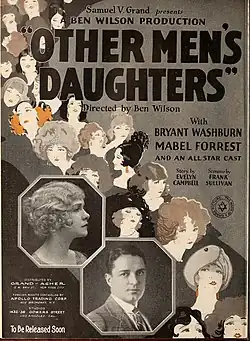 Other Men's Daughters is a 1923 American silent drama film directed by Ben F. Wilson and starring Mabel Forrest, Bryant Washburn, Kathleen Kirkham, and Wheeler Oakman.[1]