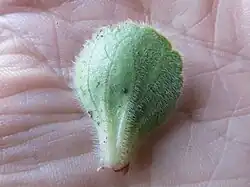 O. spathluata can be distinguished from O. confertifolia by its leaves found along the stem (vs. rosette habit), leaves very densely glandular-hairy with a velvety appearance on the upper side (vs. a silky appearance on the upper side), and usually longer inflorescences ( > 10 cm long vs. < 9 cm long).[4]