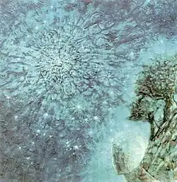 After the dissolution of the original Love lineup following the release of Forever Changes (1967), Arthur Lee assembled a new band, including guitarist Jay Donnellan, drummer George Suranovich and bassist Frank Fayad.[1] The quartet recorded 27 songs, ten of which were released by Elektra Records as Four Sail in August 1969, with the remaining songs being issued by Blue Thumb Records as a double LP, Out Here, that December.[1] The title came from the name of the cover painting, created by Burt Shonberg.[6]
