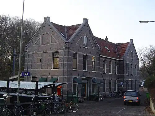 Overveen is a railway station in Overveen, Netherlands. The station opened 3 June 1881. It lies on the Haarlem–Zandvoort railway. The station has two platforms on a central island. It is located along the Tetterodeweg.