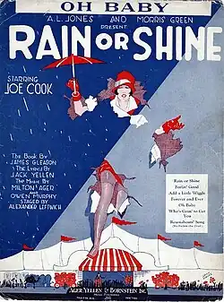 Murphy was co-lyricist with Eugene Conrad for the 1924 musical Top-Hole at the Fulton Theatre,[7] and that same year was a contributing lyricist to the musical revue Artists and Models at the Astor Theatre.[8] He was a contributing writer to both the book and lyrics of The Earl Carroll Vanities of 1925.[9] That same year he co-wrote both the music and lyrics for The Greenwich Village Follies with Harold Levey.[10] He collaborated with Levey again on both the music and lyrics for the 1926 musical Rainbow Rose which was staged at the Forrest Theatre.[11] With composer Milton Ager he co-wrote the music to the 1928 musical Rain or Shine which was written as a starring vehicle for comedian Joe Cook.[12]