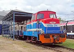 The 401Da-314 locomotive was built in 1976.[31] It belongs to Warsaw Commuter Railway and is used for transporting rolling stock on the non-electrified Pruszków–Komorów railway from Pruszków railway station to Komorów railway station.[33]