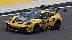 In 1998 Kurt Thiers and Vincent Vosse competed in the Belgian Belcar championship. The duo scored three podium finished and secured the third place in the championship standings in their Porsche 911.[11] The following year, the team entered a Porsche 993 Turbo for Anthony Kumpen and Stephane Cohen. The team dominated, winning three times at Zolder and once at Spa.[12] The team secured the championship 120 points clear of the number two, Cor Euser and Herman Buurman.[13] For 2000, the team combined their FIA GT and Belcar championships using the Chrysler Viper GTS-R in both series. Despite winning six out of eight races, including the 24 Hours of Zolder, the championship was decided in the last round at Zolder in October.[14] Kumpen and Cohen retired early in the race and as Albert Vanierschot and Bert Longin won the race and the championship over GLPK Racing.[15] The 2001 Bert Longin and former motocross racer Eric Geboers won two races in the Belcar championship. Longin was the best placed GLPK Racing driver in twelfth place in the championship.[16] The following season PK Carsport dominated Belgium's premier racing series. Four PK Carsport drivers placed in the top four of the championship. Bert Longin scored most points, followed by David Hart, Anthony Kumpen and Vincent Dupont.[17] All races were won by one or the other GLPK Chrysler Vipers.[18] In 2003, all but one races were won by GLPK Racing, one race was won by Paul Belmondo Racing.[19] Of the GLPK Racing drivers, Anthony Kumpen was declared series champion.[20] After a partial season in 2005, GLPK Racing won the championship again in 2006. Kumpen and Longin won five races and finished third in the 24 Hours of Zolder. Therefore, the team, now racing a Corvette, won the championship.[21] For 2007 the Belcar championship was reorganized and SRO Belgium took over.[22] Kumpen scored two wins and again clinched the championship. As the original Belcar championship ceased to exist, PK Carsport backed out of the championship.
