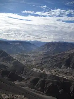 Pachica is a small town located in the Tarapacá ravine that dates back to the 18th century and originally was part of Peru. The town also has several tourist attractions like Infiernillo where you can find petroglyphs[3] and a construction of Tranque Pachica that was abandoned in the 1930s whose objective was to supply water to the towns of the Quebrada de Tarapacá.[4] The residents of Pachica are involved in agriculture, mostly the production of alfalfa and vegetables. Their houses built since the 80's are made of stone and woven cane.