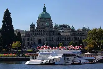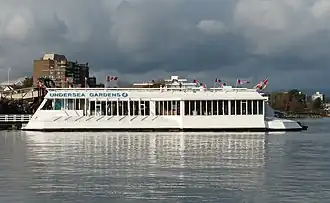 Pacific Undersea Gardens was originally opened at the Oak Bay Marina in 1964, and later relocated to its current location in Victoria's inner harbour in 1969. Its last day of operation was October 17, 2013. It was closed due to age and the high cost of improvements that would be required to bring it up to code.[3] Following its closure and removal from the Inner Harbour, the space it formerly occupied has since been taken over by the V2V ferry, which is a 3 hour, luxury, walk-on passenger only ferry to downtown Vancouver.