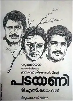 Padayani is a 1986 Indian Malayalam-language thriller film written and directed by T. S. Mohan and produced by Sukumaran. It stars Mammootty, Mohanlal, Master.Indrajith, Shobhana and Devan. The film features music composed by A. T. Ummer.[1][2] Sudhakaran, Ramesh and Rajasekharan are long-lost friends, who reunite to take revenge against the evildoer in their lives. The film was the debut of Indrajith Sukumaran, who plays the younger version of Ramesh (Mohanlal).