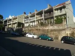 Terraces on Cascade Street, showing the uneven terrain of the area