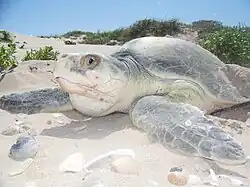 In September 2007, Corpus Christi, Texas wildlife officials found a record of 128 Kemp's ridley sea turtle nests on Texas beaches, including 81 on North Padre Island (Padre Island National Seashore) and 4 on Mustang Island. Wildlife officials released 10,594 Kemp's ridleys hatchlings along the Texas coast this year. The turtles are endangered due to shrimpers' nets and they are popular in Mexico as boot material and food.[8]