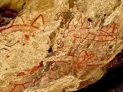Painted Rock is a smooth horseshoe-shaped marine sandstone rock formation with pictograph rock art about 250 feet across and 45 feet tall near Soda Lake within the Carrizo Plain National Monument[1] on the southwest side of the northern Carrizo Plain, west of Bakersfield and about 70 miles (110 km) east of San Luis Obispo and 45 miles (72 km) west of Taft, in California, United States.