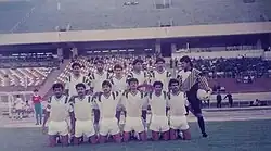 In 1976, the Quaid-e-Azam International Tournament was established in Pakistan to commemorate the centenary of the birth of Muhammad Ali Jinnah, the first leader of Pakistan, in which two Pakistan national teams would participate, the Pakistan national football team under the name of Pakistan Greens, and the national B team under the name of Pakistan Reds, captained by national team player Mujahid Tareen.[1] Although the team was only reserved for exhibition matches, in the next editions, the reserves team formally participated in the tournament under the name of Pakistan Blue in 1982, and Pakistan White in 1985, 1986 and 1987.[1][2][3]