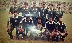 Pakistan faced Iran in their first official international game in Tehran on 27 October 1950, losing 5–1 during the Shah of Iran's birthday celebrations. Reportedly the Pakistan national team played the match barefoot, which was the norm back in South Asia.[9] Pakistan also engaged in unofficial friendly matches during the tour, losing against Tehran's Taj by 1–6 scoreline and drew 2–2 against a team from Isfahan.[9] The next month, the team toured Iraq, where due to the Iraqi FA's inability to gather a full national team, Pakistan played an unofficial friendly against the club Haris al-Maliki resulting in a 1–1 draw.[10]