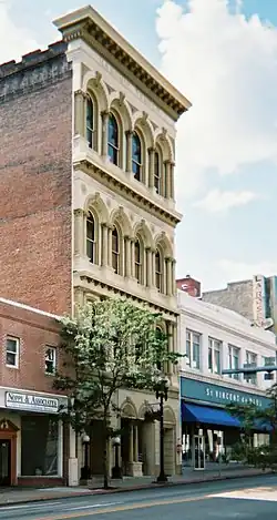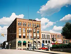 - Masonic Temple Building (132 South Main Street) is a four-story building with an Italianate cast iron facade, now used as law offices. Built in 1872, it is the oldest building in the historic district.[10]