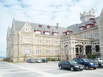 The Palacio de la Magdalena (Spanish for Magdalena Palace) is a palace in Santander (Cantabria), Spain. Its construction was financed by popular subscription and given to the Spanish royal family for use as a summer residence. It was built by architects Javier González Riancho and Gonzalo Bringas Vega between 1909 and 1911. The palace is located at the Magdalena Peninsula in the place where the old Fort of San Salvador de Hano was, which protected the entrance to the bay. Since 1932, it hosts the summer courses of the Menéndez Pelayo International University. In 1977, the City Council of Santander bought back the palace and the peninsula.