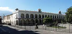 The Captain General Palace, or Palacio de los Capitanes Generales, is a large building localed in the Central Square of Antigua Guatemala. It serves as the headquarters of the Guatemala Institute of Tourism, the Antigua Tourism Association, National Police and the Sacatepquez Department government.[3][4] It also houses the National Museum of Guatemalan Art.[5][6]