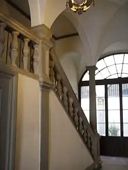 Inside there are two staircases leading to the upper floors, as well as two doors leading to the cellars, to the right at the rear there is a door that leads into two interconnected large rooms. The main staircase, leading to the second floor occupied by private flats, has a stone handrail. At the back of the entrance there is a courtyard with blocked arches, dating to the end of the XIV century, which obviously constituted a loggia connected to the tradesmen's entrance. There is a small loggia giving on to the courtyard. The Gherardi coat of arms is still visible on the back wall of the courtyard.