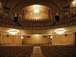 Built on land owned by Palla Strozzi, it passed to his cousins Agnolo and Palla di Novello after his exile in 1434. They ordered a renovation around 1457, with the design attributed to Filippo Brunelleschi, although other architects participated in the construction, including Michelozzo, to whom the lower façade, featuring an irregular rustication, is attributed. The first floor, which has double mullioned windows and a gentler rustication, is attributed to Giuliano da Maiano (c. 1456). The third floor, with more polished stone, was not added until the 19th century, in a style paralleling similar Renaissance palaces.[1] Michelozzo also designed the internal courtyard (c. 1460), which had a portico with columns. The courtyard was destroyed to accommodate the cinema.
