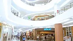 Palembang's first flyover was completed at Simpang Polda in September 2008.[57] A second flyover, in Jakabaring, was completed in 2015.[58] In 2010, Palembang launched its bus transit system, Transmusi.[59] In 2015, the central government began upgrading Palembang's transportation with the construction of a light rail transit system from Sultan Mahmud Badaruddin II International Airport to Jakabaring, followed by toll roads, two Musi River bridges, and two flyovers, ahead of the 2018 Asian Games.[60][61][62] The city's main toll road commenced operation in October 2017.[63]