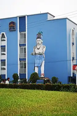 The name Palenque comes from Spanish and means “wood stake fence.” It is a literal translation of the Ch’ol word “otulún” which means fenced or fortified place.[4] The modern town was founded by Friar Pedro Lorenzo near the ruins of the same name in 1567. It was founded to congregate the Ch’ol indigenous families that were dispersed in this part of the Lacadon rainforest. In 1768, the state of Chiapas was divided into “alcaldía mayores” with Palenque belonging to that of Ciudad Real (San Cristóbal de las Casas). In 1813, the settlement was officially declared a town. In 1821, a road between Bachajon and Palenque was constructed, and the town's first school was established in 1828. In 1847, the area became part of the department of Tila. Two year later it was made into its own department. The annual fair of Santo Domingo (Saint Dominic) was authorized in 1877. In 1883, the state was reorganized into twelve departments with Palenque as head of one of them. A railroad connecting the town with the Gulf of Mexico was constructed at this time, with the Pakalna station, which still exists. The municipality system was created in the state in 1915, with Palenque head of its own municipality. The first airfield was established in 1931 and mail and telegraph arrived in 1941. In 1972 it was declared a city by the governor of the state of Chiapas. The Casa de Cultura was founded in 1980 with the main road paved in 1990. The Cecytec technical college was founded in 1994. The modern airport, Palenque International Airport, was created in 1997.[4] There is a proposal to build a station, Palenque railway station, here, along the route of the Tren Maya.