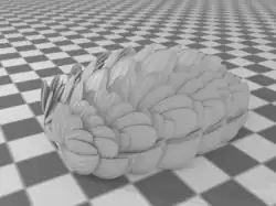 An arthropod that had segmentation which resembled that of a millipede, as well as head and tail shields with thorny spikes. Recently, it was recovered as the most basal artiopod. |