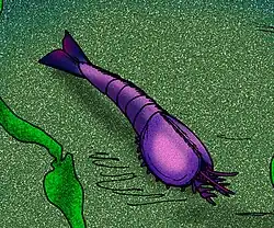 A large hymenocarine that possessed a semicircular bivalved carapace, and was one of the largest arthropods from the Cambrian | ![]() |