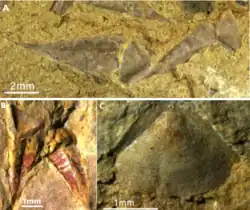 - ^ a b Zeng, Han; Zhao, Fangchen; Yin, Zongjun; Zhu, Maoyan (2 January 2018). "Morphology of diverse radiodontan head sclerites from the early Cambrian Chengjiang Lagerstätte, south-west China". Journal of Systematic Palaeontology. 16 (1): 1–37. Bibcode:2018JSPal..16....1Z. doi:10.1080/14772019.2016.1263685. ISSN 1477-2019.