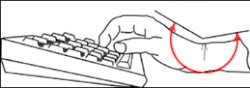 To mitigate potential problems, the Occupational Safety and Health Administration (OSHA) recommends the hands to be elevated above the rest while typing.[1] While not typing, the rest should contact the hand's palm/heel, not the wrist.[1] As well, they recommend for the wrist rest's slope and height to match the front of the keyboard, and for the rest to be soft, with a depth of at least 3.8 centimetres (1.5 in).[1]