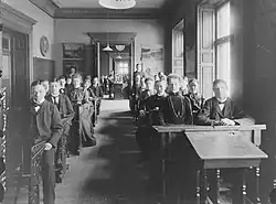 Primary school was introduced gradually from 1962 The school was private but was municipalized in 1974. Operations ended on 10 June 1977 after the 100th school year.[3] The French government bought the building in 1988 for 8.4 million SEK and has converted the exterior of the Q-marked (culturally protected) building into an embassy building.