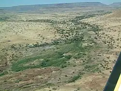 Palmwag is a veterinary control point, an oasis and a tourism concession area on communal land in northern Namibia.[1] It is located in the Kunene region on the Uniab River, in northwestern Damaraland, halfway between Swakopmund and the Etosha National Park. It covers an area of 400,000 hectares and has populations of Hyphaena petersiana. Palmwag is situated on the Red Line, a veterinary cordon fence separating northern Namibia from the rest of the country.