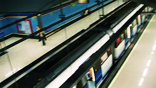 Palos de la Frontera [ˈpalos ðe la fɾonˈteɾa] is a station on Line 3 of the Madrid Metro, serving the Palos de la Frontera barrio, named after the town of the same name in south Spain, It is located in fare Zone A.[1]