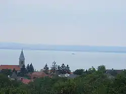 The vicinity of Lake Balaton affects the weather heavily, the local microclimate differs from the highlands': the village is sheltered from the wind, the weather is mild all year. The soil is characterized by clayey sand and red marl, along with red sandstone. In the woods one can find oak, beech, and pine, and in the gardens peach, apricot, almond, and – first of all – grape yield.