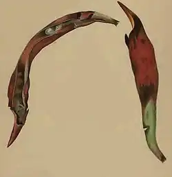 The wingspan is about 11 mm.[2] The forewings are pale olive grey, a little darker posteriorly. Before the middle is an oblique whitish fascia, nearest the base of the wing on the inner margin, the whitish colour of this fascia runs along the edge of the costa and inner margin to the middle of the wing. Beyond the middle is a whitish blotch not reaching to the costa, and intersected by two dark olive-grey veins. The apex of the wing is whitish, streaked with grey. The hindwings are pale grey.[3]