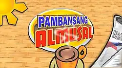 Pambansang Almusal (transl. National Breakfast) is a Philippine television news broadcasting and talk show broadcast by Net 25. Originally hosted by Mavic Trinidad, Gen Subardiaga and Eden Suarez-Santos, it premiered on October 24, 2011 on the network's morning line up. Phoebe Publico, Kristel Fesalbon, Wej Cudiamat, and Apple David will serve as the final hosts. The show concluded on August 27, 2021. It was replaced by Kada Umaga in its timeslot.[1]