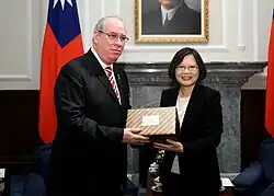 On 13 June 2017, Panama and the People's Republic of China issued a joint declaration of establishing diplomatic relations with each other. Simultaneously, Panama severed official relations and official contacts with Taiwan.[1] In 2019, newspaper La Prensa reported that China does not allow Panama to host a Taipei Economic and Cultural Representative Office, thus preventing Panama from holding unofficial ties with Taiwan via a de facto embassy. The same was attempted by China in the Dominican Republic but was unsuccessful.[3]