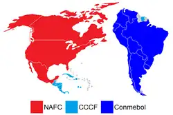 The Panamerican Football Confederation (Spanish: Confederación Panamericana de Fútbol) (Portuguese: Confederação Panamericana de Futebol) (French: Confédération Panaméricaine de football) (Dutch: Panamerikaanse voetbalconfederatie) and abbreviation (PFC) was a football confederation founded in 1946 in an attempt to unite all the countries of the Americas into a single confederation, It consisted of the North American Football Confederation (NAFC), the Central American and Caribbean Football Confederation (CCCF) and the South American Football Confederation (CONMEBOL), the confederation was dissolved on 1961 when CCCF and NAFC were merged to from CONCACAF and with the exit of CONMEBOL.