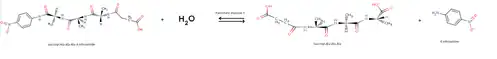The hydrolysis that elastases bring about occur in several steps, starting with the formation of a complex between elastase and its substrate, with the carbonyl carbon positioned near the nucleophilic serine, followed by a nucleophillic attack that forms an acyl-enzyme intermediate (a pair of electrons from the double bond of the carbonyl oxygen moves to the oxygen) while the first product is released. The intermediate is then hydrolyzed in a deacylation step, regenerating the active enzyme and resulting in the release of the second product ( the electron-deficient carbonyl carbon re-forms the double bond with the oxygen and the C-terminus of the peptide is released. It preferentially cleaves peptide bonds at the carbonyl end of amino acid residues with small hydrophobic side chains such as glycine, valine, leucine, isoleucine and alanine. The wide specificity of elastases for non-aromatic uncharged side chains can explain its ability to break down native elastin.[11]