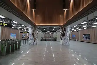 Panlong Road (simplified Chinese: 蟠龙路; traditional Chinese: 蟠龍路; pinyin: Pánlóng Lù) is a station on Line 17 of the Shanghai Metro. The station is located at the intersection of Songze Avenue at Panlong Road in the city's Qingpu District, between Zhuguang Road and Xuying Road. It opened with the rest of Line 17 on 30 December 2017.