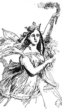 Ghica's work of hidden memoirs, the novella Un boem român ("A Romanian Bohemian"), was a tale of adventure and unrequited love: its main character, Paul, whose adventures mirror many in Ghica's life, elopes with a married woman, only to find that she is not faithful to him either.[21] The plot is probably the first one in Romanian literature to discuss the topic of free love.[33] In 1850, Ghica authored a piece in honor of the deceased poet Vasile Cârlova, titled O lacrimă a poetului Cârlova ("One of Poet Cârlova's Tears"). It depicted Cârlova drinking from a skull-shaped cup with the inscription Lina, adu-ţi aminte! ("Lina, remember!", allegedly in honor of a nun he had loved).[34]