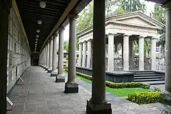 The San Fernando Pantheon (also known as Museo Panteón de San Fernando) is one of the oldest cemeteries in Mexico City that is preserved to this day.[1][2] It is one of the most representative examples of 19th century funerary architecture and art in Mexico, and it functioned between 1832 and 1872.[3] It is the final destination of the remains of several of the outstanding figures of 19th century Mexican history, and the most prominent are the remains of Presidents Benito Juárez, Miguel Miramón (later interred in the Puebla Cathedral) and General Ignacio Zaragoza, among many others.[4]